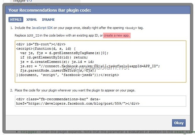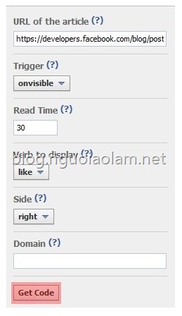 data-read-time – waiting time before widget pop up. (30s by default. The smallest number of seconds is 10s)data-action – you can choose 'like', or 'recommend'data-side – Position of widget: 'left' or 'right'num_recommendations – Number of posts to show. Maximum: 5 posts